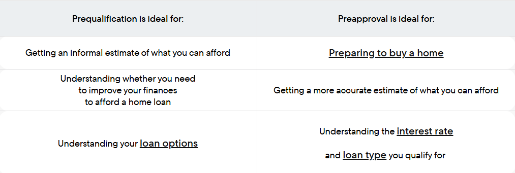 If you’re in the early stages and just starting to explore your loan options, a prequalification can give you an idea of how much house you can afford. It’s a low-commitment way to set expectations and begin your search.